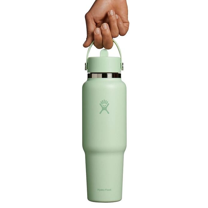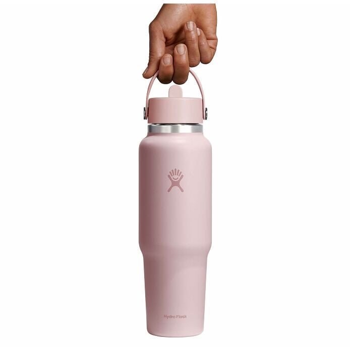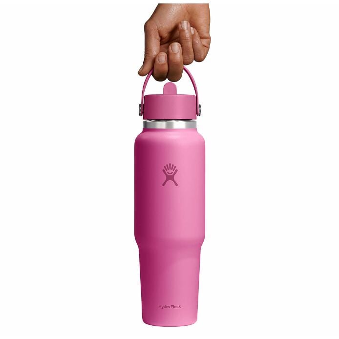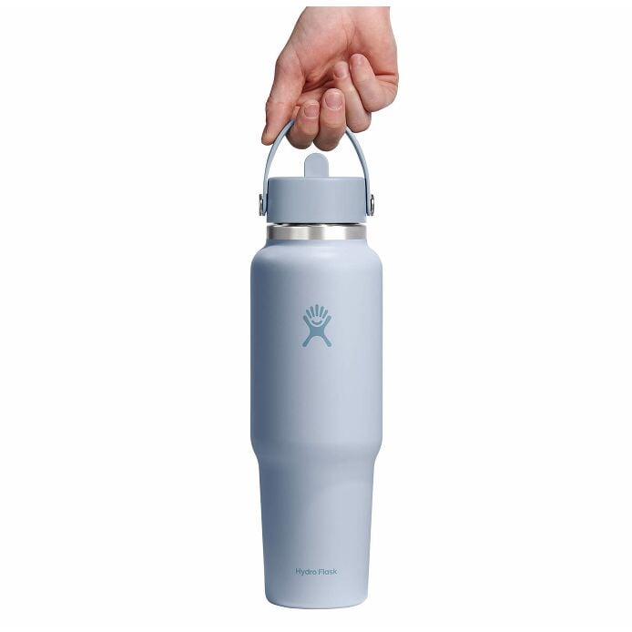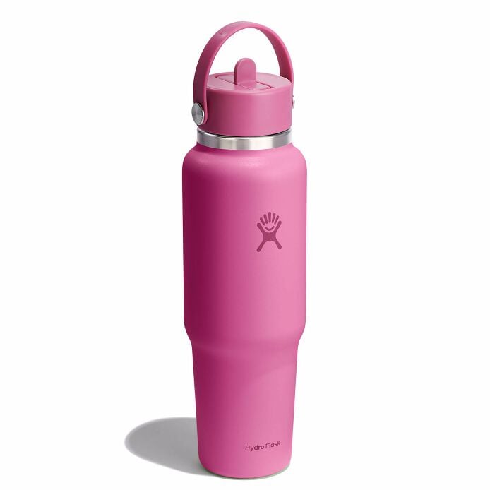 The Travel Bottle is the best of both worlds??leakproof. 24 hours cold and cupholder compatible. Your favorite insulated 40 oz Hydro Flask bottle. now with a cupholder-fit design. Drinks stay cold for 24 hours. and the Flex Straw Cap makes it easy to sip while keeping your eyes on the road and your hands on the wheel. The insulated bottle easily fits ice cubes and is dishwasher safe. Designed for seamless cupholder fit. it’s right at home on the open road.
